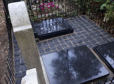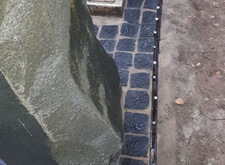 Наземное покрытие могилы гранитной брусчаткой,