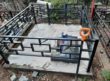 Приехав на участок вновь, мы принялись за установку ограждения, предварительно прополов место захоронения и демонтировав старые памятник с цветником.